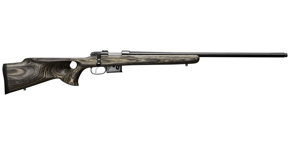 Este rifle moderno com uma Coronha ergonómico do estilo do thumbhole feito da madeira laminada é particularmente apropriado para caça de pragas.